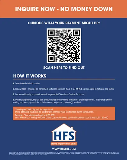 Scan the QR code to access HFS Financial's platform and find the best financing plan for your project.